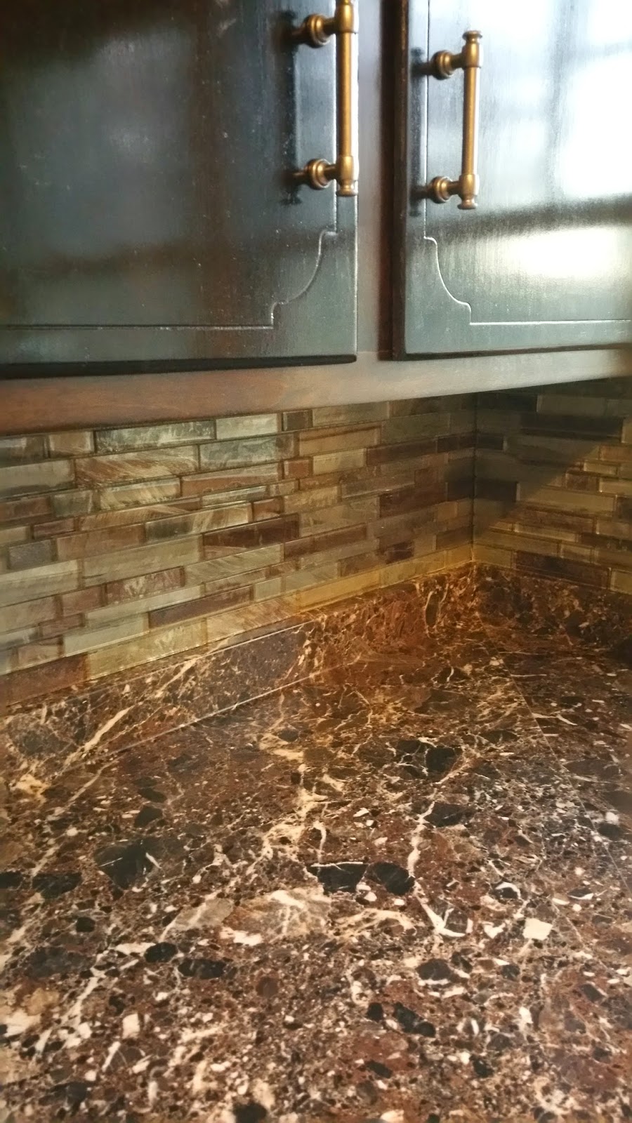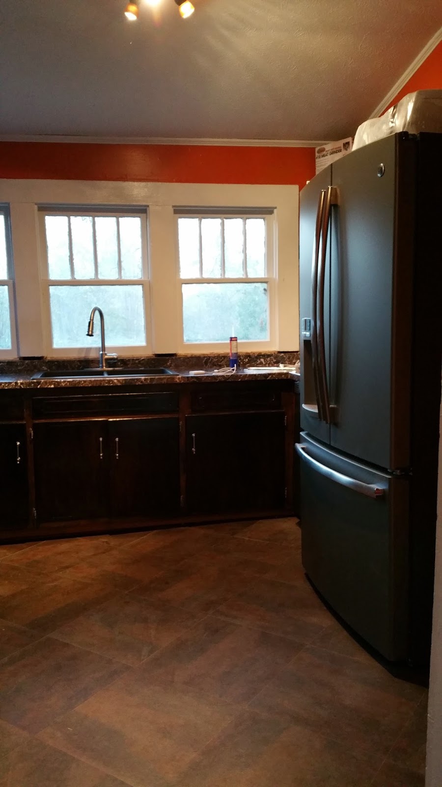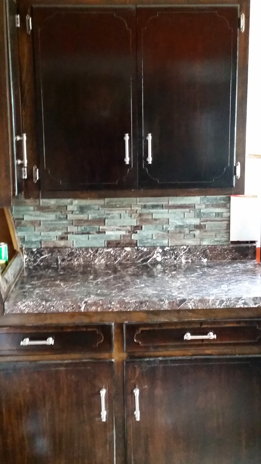 So, Charlie, who is an awesome little worker, decided it would be his job to pull up all the nasty sticky linoleum from the floor. He ended up having to pull up 2 and sometimes 3 layers of linoleum from the floor. I think it took him 3 days to finish. Once complete the floor finally looked clean, and then we moved onto the cabinets. I removed the doors, and removed all the sticky back plastic from the shelves, walls, and drawers.