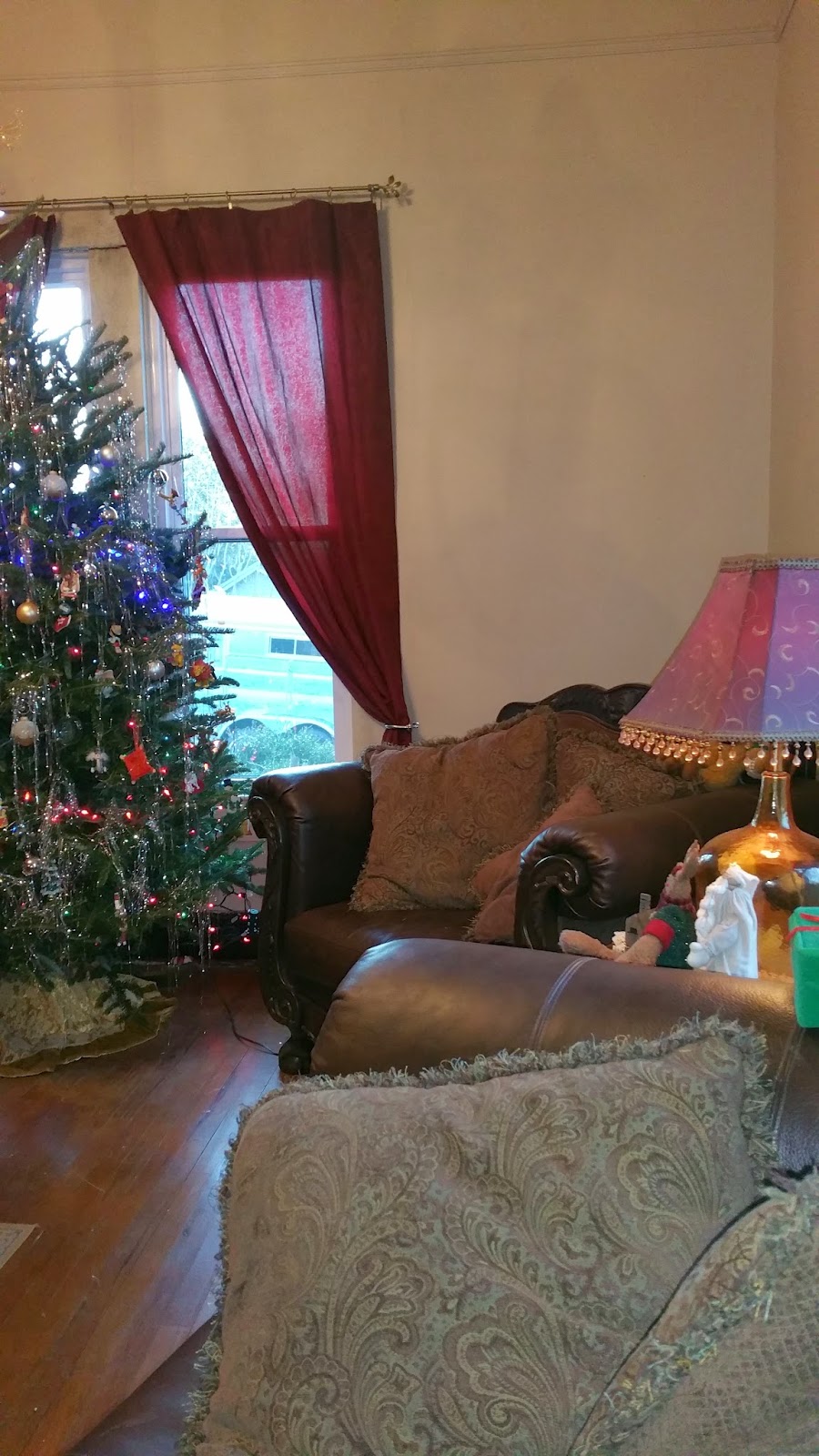 I thought I would post pictures of how we decorated the Living Room for Christmas. This room is probably one of the rooms that needs the least work. We have to paint the ceiling, strip and stain or paint all the trim and sand/stain/finish the floors.
