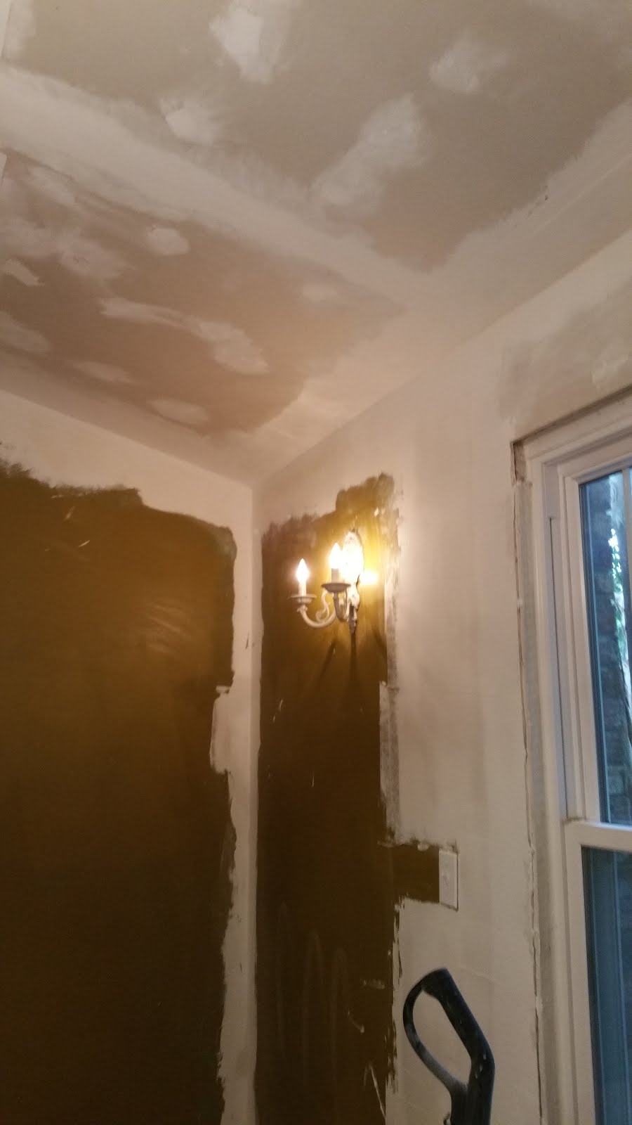 So after all the bad had been removed, Kevin started the long process of replacing. Below is a picture of insider to the right of the window after the wall has been cleaned and the new roof is on. Below is a picture of the area for the final piece of drywall. I might add here that Kevin hates drywalling with a passion so we are really glad that there is only a small amount of drywall work left to do in the blue room.
