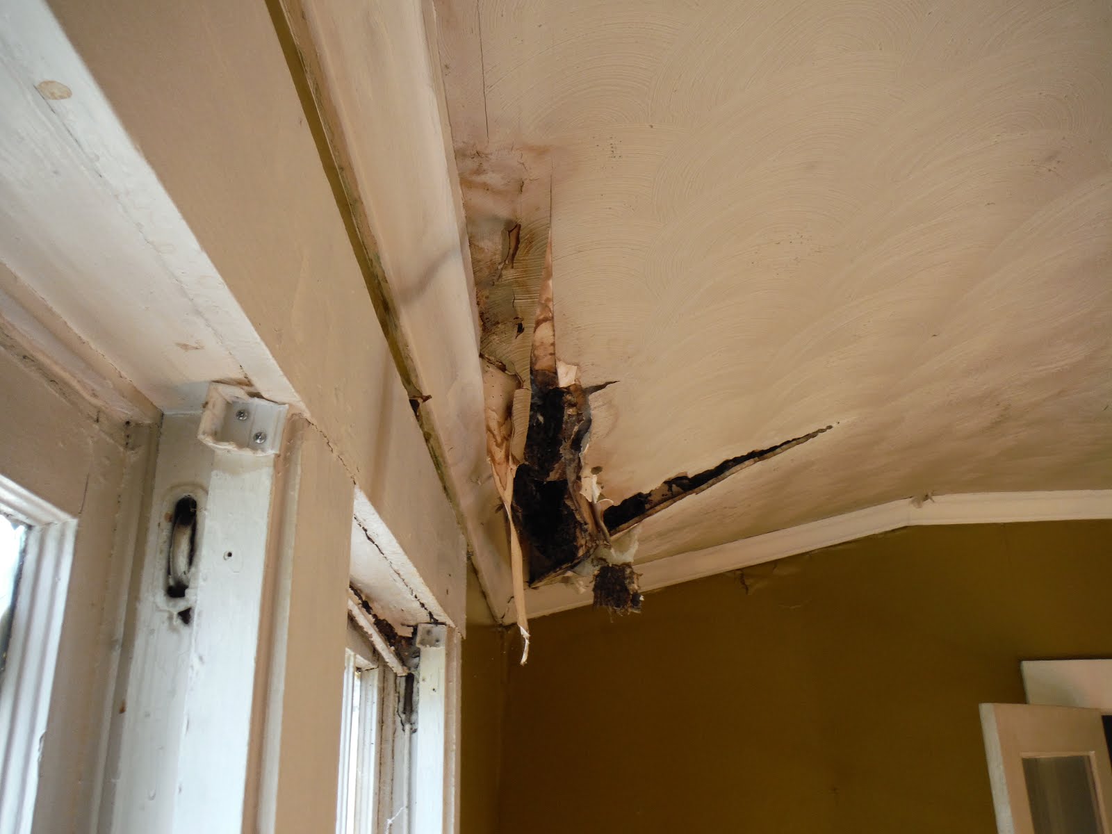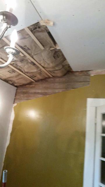 As you know when we first purchased the house, the dining room roof and ceiling had problems. There was a massive hole in the roof which had caused all the ceiling and the outside wall to be completely rotted and moldy.