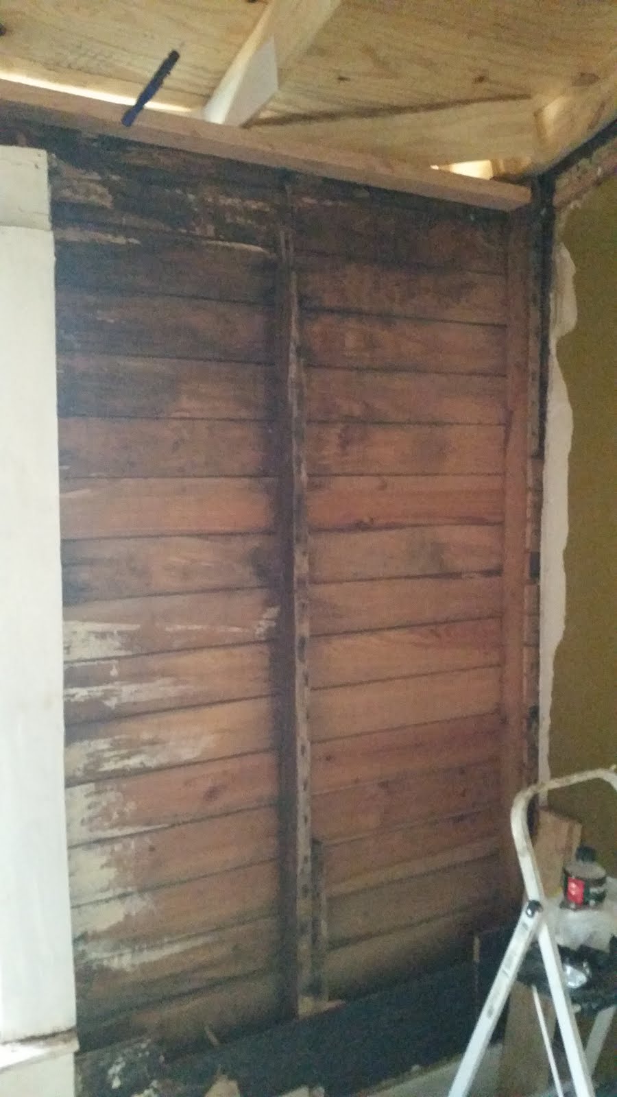 We were very lucky to have Sam and Jessica come to visit and they helped to pull down all the bad drywall on the ceiling and walls, remove the bad framing and roof. WOW what a mess, that is for sure. The smell was not particularly nice because of the mold.