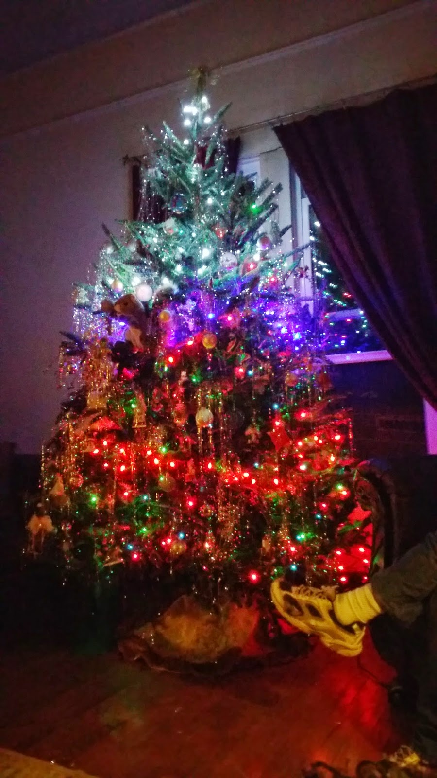 I thought I would post pictures of how we decorated the Living Room for Christmas. This room is probably one of the rooms that needs the least work. We have to paint the ceiling, strip and stain or paint all the trim and sand/stain/finish the floors.