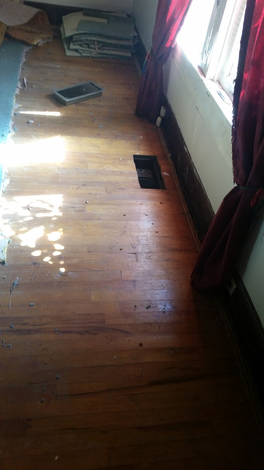 We have painted the walls, pulled up the nasty carpet, and plan to either replace the chandelier or at least add some beads to it make it look more interesting! We also plan to replace all the tiles on the fire place which also goes into the office/family room next door.